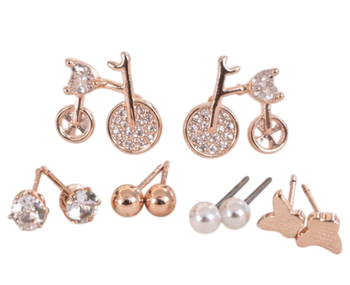 5 Pairs Stud Earrings Set for Women | Rose Gold CZ Diamond, Pearl & Designer Stud Combo | Daily Wear & Party Wear Jewellery