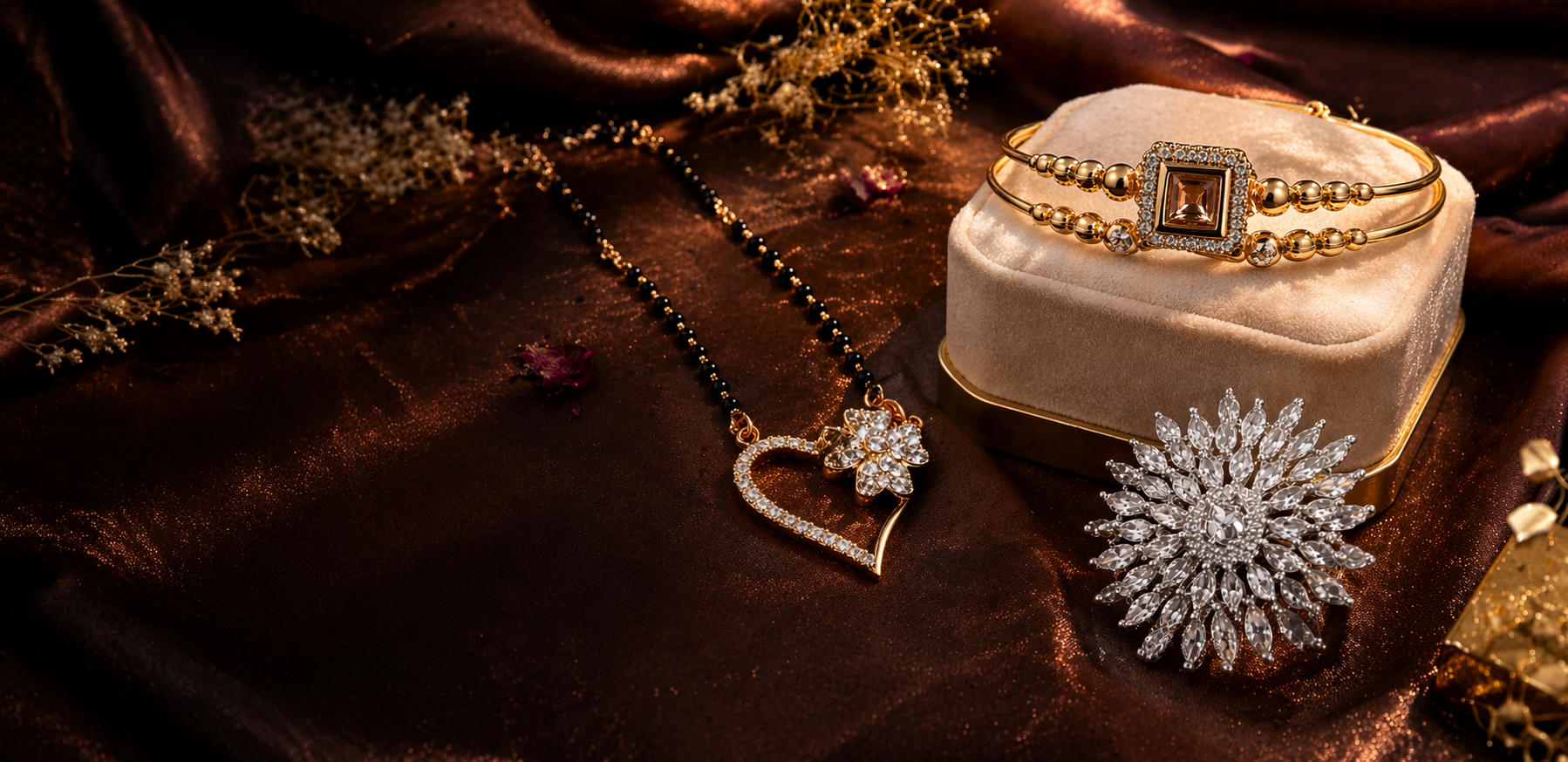 SOVAR Rose Gold Heart Mangalsutra Necklace with Crystal Flower | Gold Plated Heart Pendant Mangalsutra with CZ Diamonds | Modern Daily Wear & Wedding Jewellery